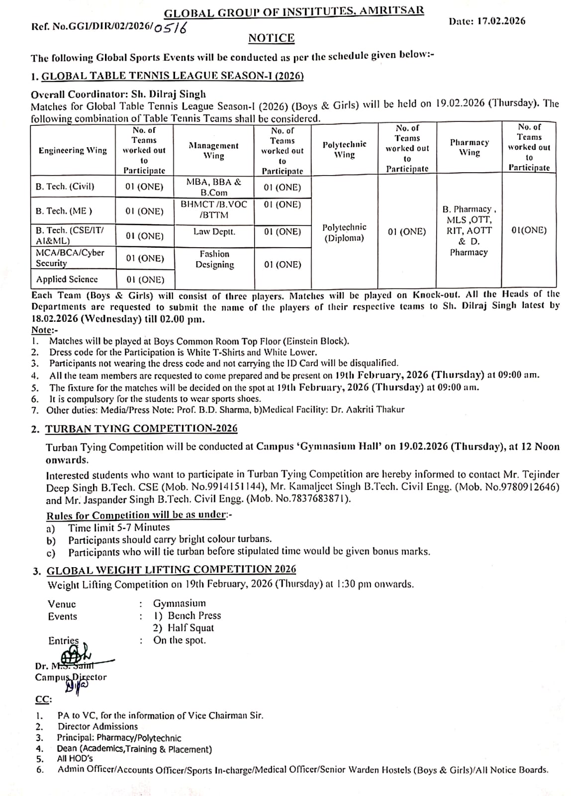 Disclaimer: Global Group of Institutes is not responsible for any information uploaded on internet apart from its official website and official Facebook page. Every effort is made accurate to put latest information on our website, however lapse if any, can not hold the Global Group of Institutes accountable.