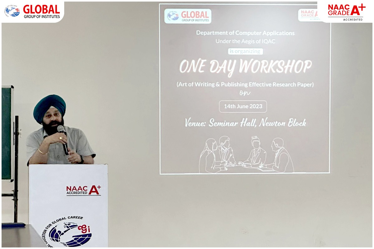 Department of Computer Applications of Global Institutes organized one Day National Workshop on “Embedded System” on 17th August 2017. First Technical Session was taken by Dr. Manjit Singh Bhamrah, Professor (Electronics and Communication Engineering), Punjabi University, Patiala on “Introduction to Embedded System & Microcontroller”. He introduced to the students about the number of applications of Embedded Systems in our daily life. He highlighted topics namely the importance and evolution of microcontroller chip, criteria of choosing a microntroller chip based on available RAM/ROM memory & Input/output units, programming of the chip. The students had shown keen interest in programming and product development around microcontroller. The talk was very informative and well appreciated by the audience.