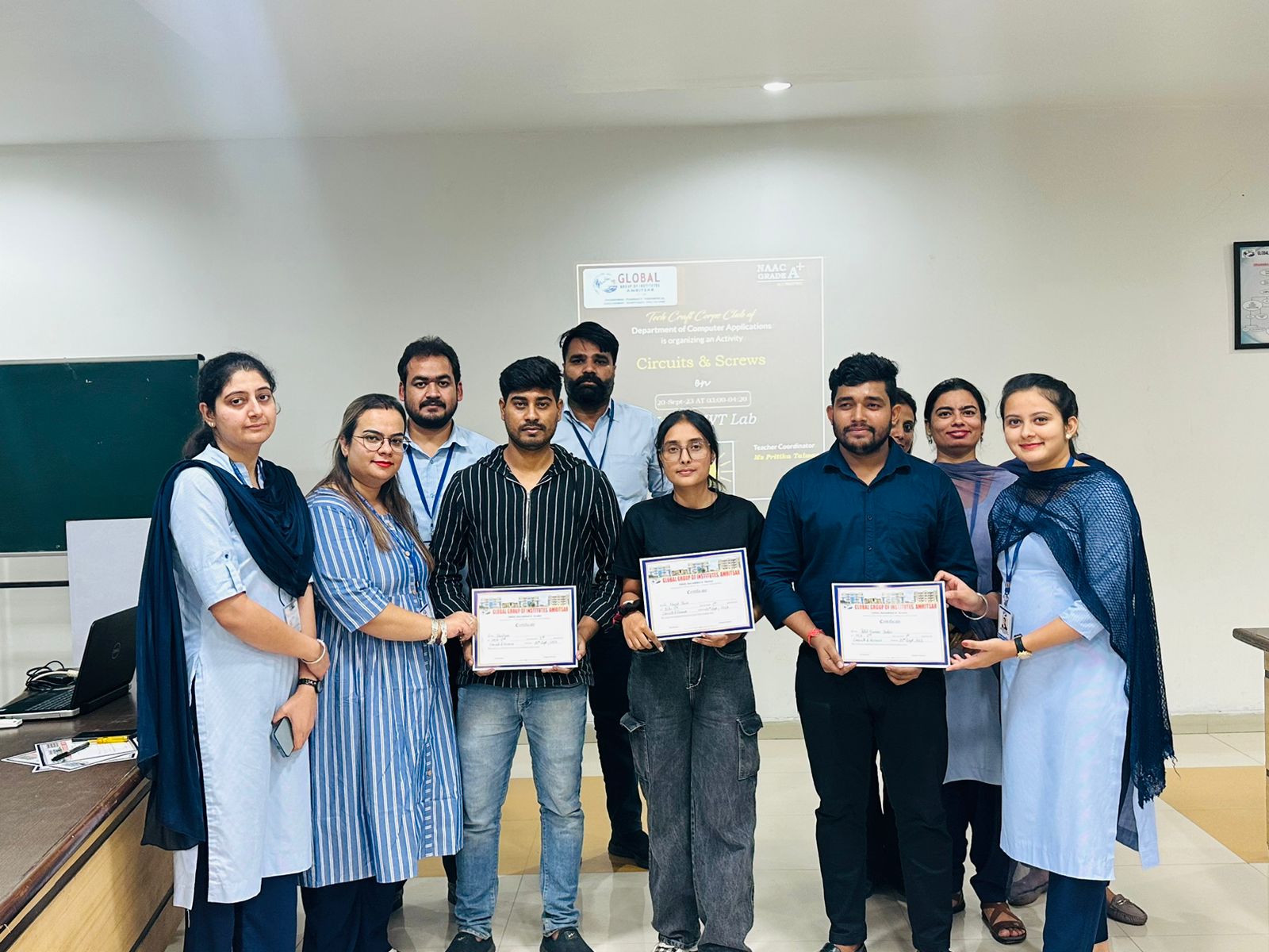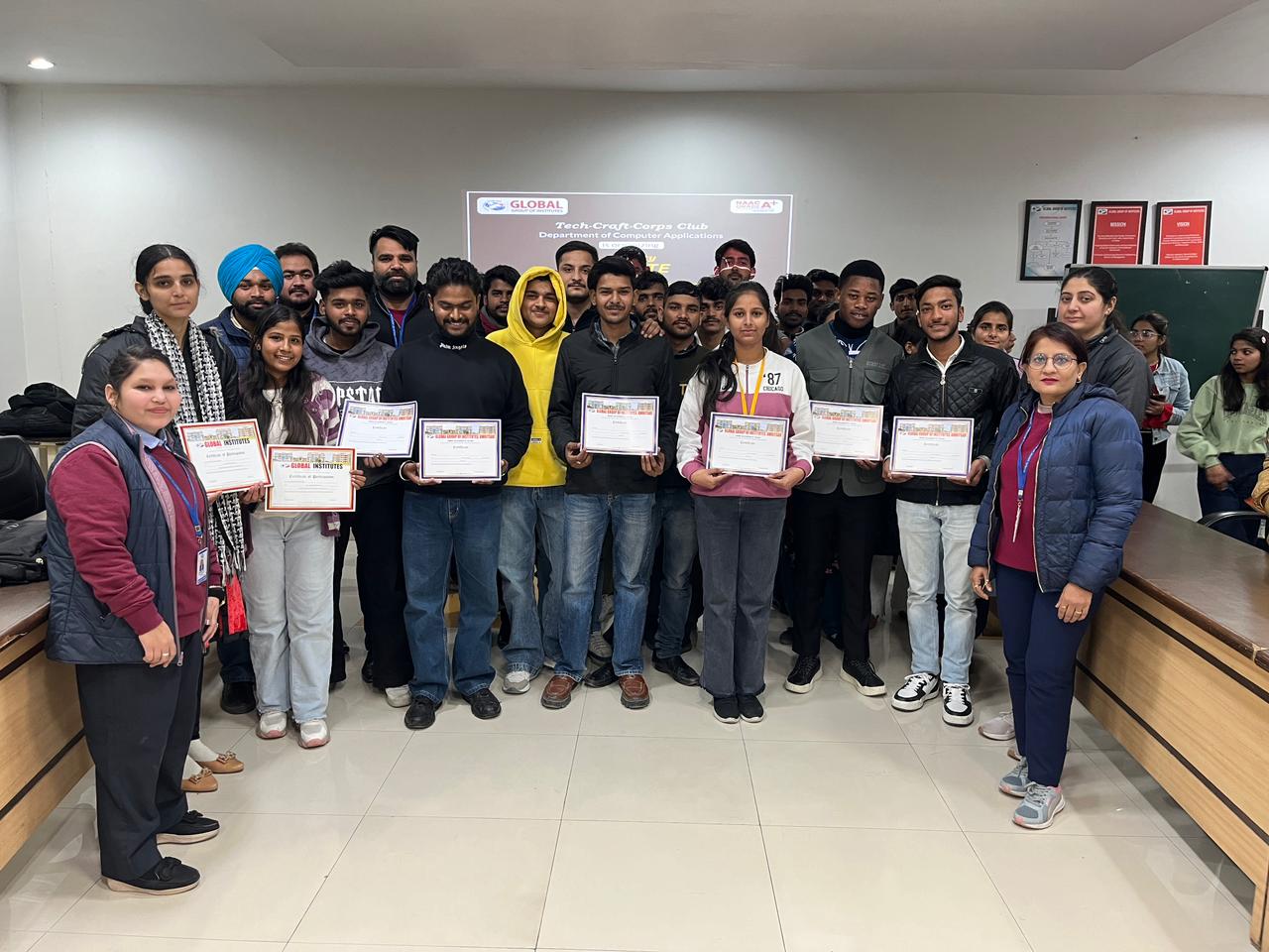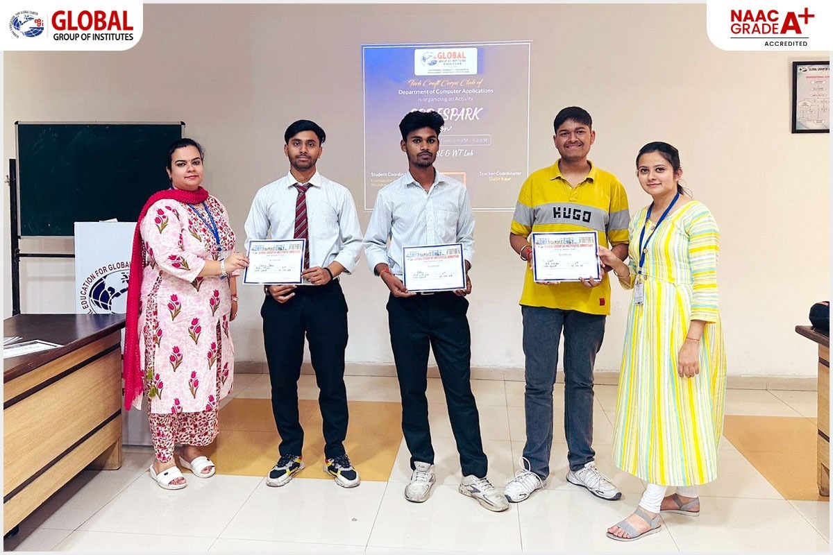 In order to clarify upon the basic concepts as being required by various IT giants, Tech-Craft-Corps Club of Department of Computer Applications of Global Institutes Amritsar has organized a Workshop on “LAN Devices” for its MCA & BCA students. The expert for the session was Mr. Nishant Kumar, Network Administrator at one of the technological lab at Jalandhar.