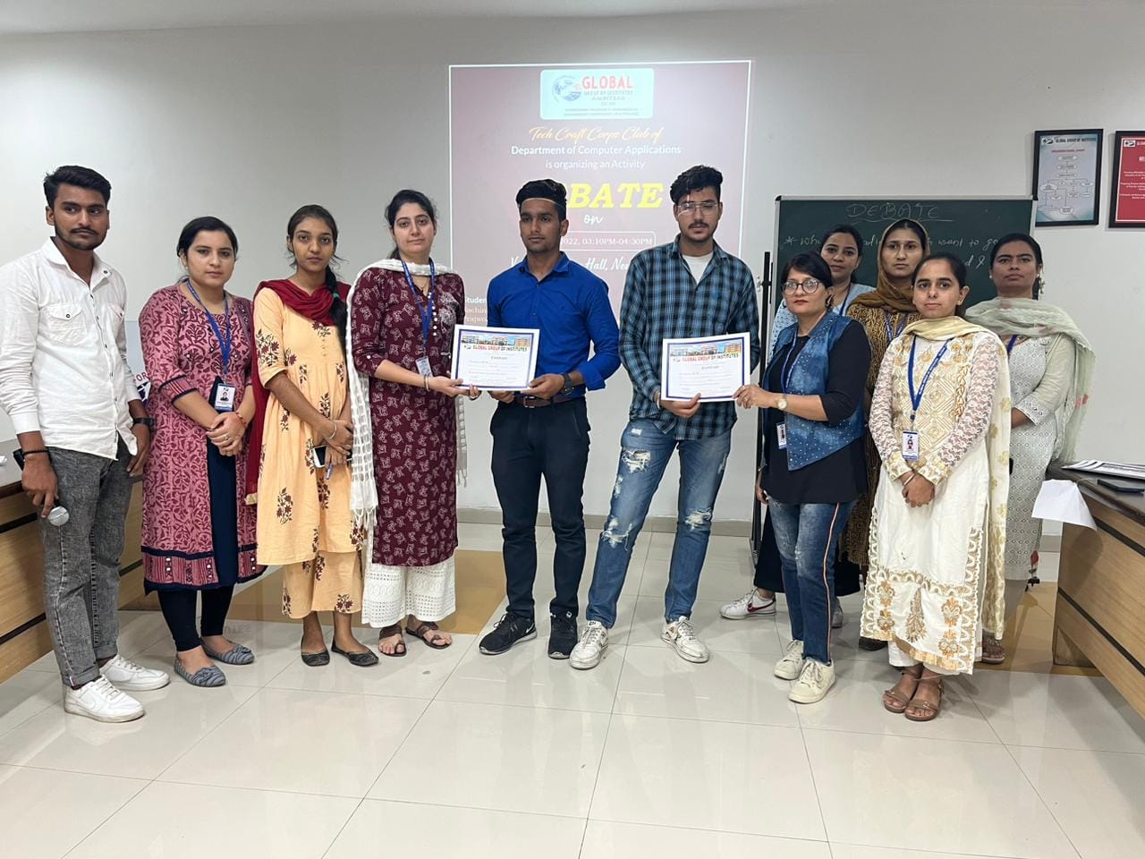 Tech craft crops club of the department of Computer Applications Organised “Debate” on 07 -02-2024 for students of BCA and MCA , the main aim of the activity is to promote problem solving and innovative thinking , and help students to build link between words and ideas that make concepts more meaningful . Which will help the participants to speak without hesitation thereby boosting their confidence to speak publicly students participated in teams there are 3 members in one team to speak on given topic randomly without any prepared notes. The time limit for round 1 was 5 minutes and for the second round the time limit was 3 minutes.