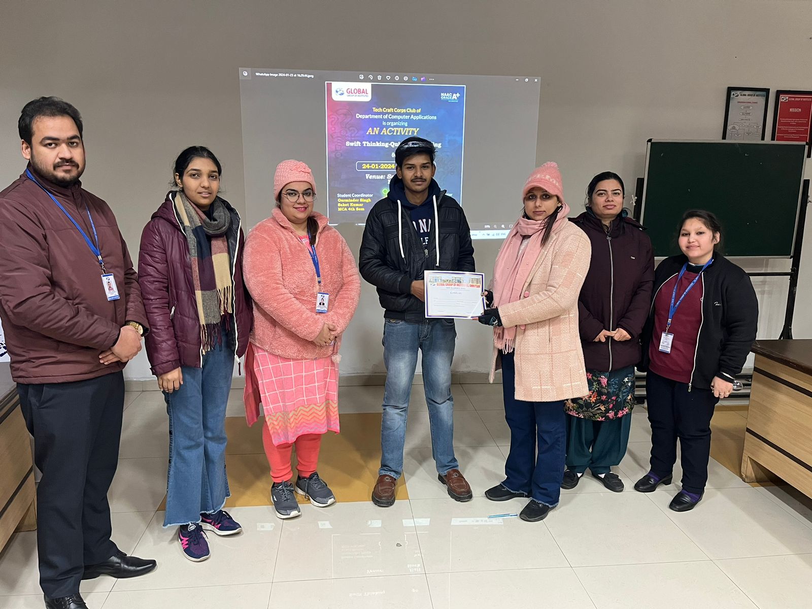 Tech Crafts Crops Club of Department of Computer Applications organised “Swift Thinking-Quick Responding “ activity on 24-01-2024 for students of MCA and BCA”