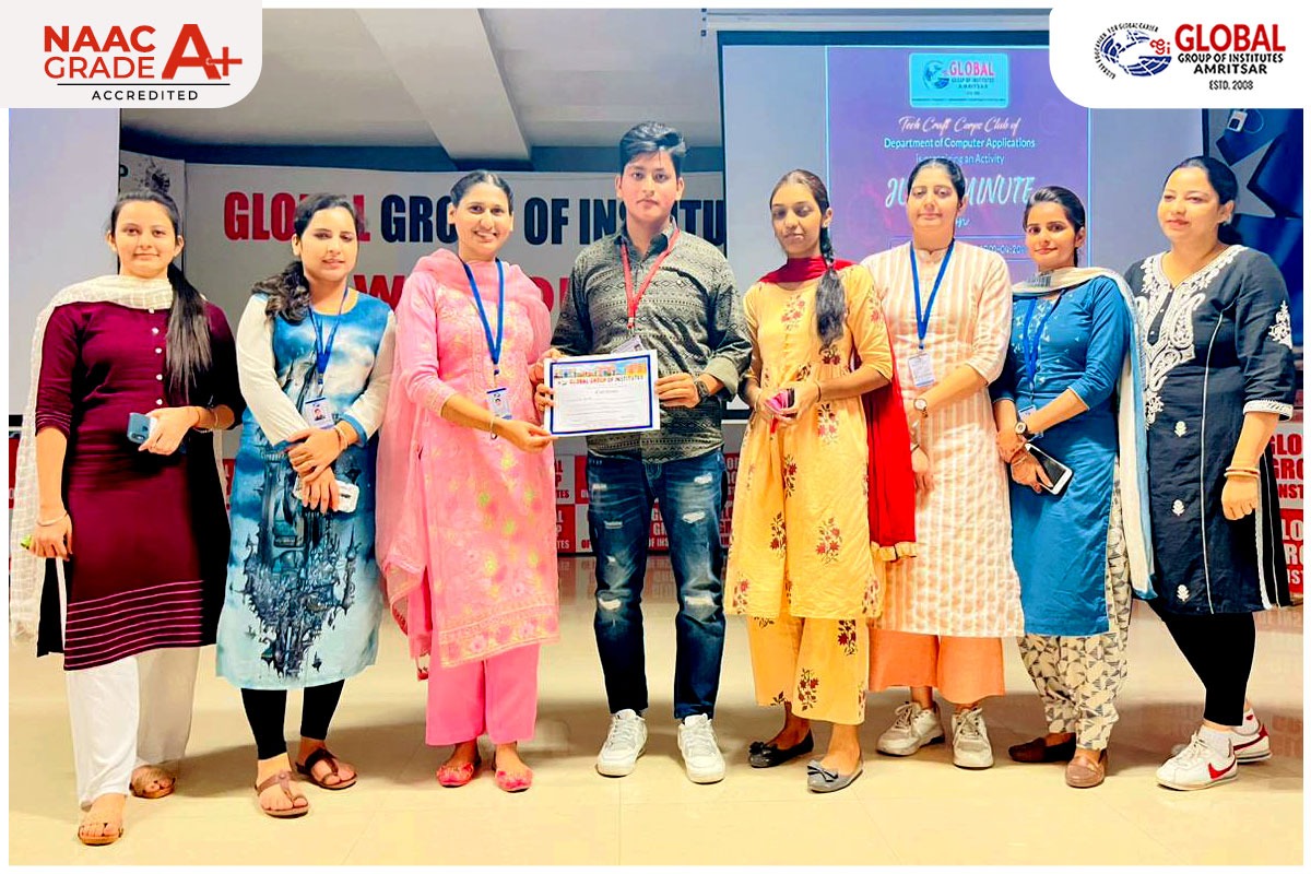 Tech-Craft-Corps Club of Department of Computer Applications of Global Institute of Management & Emerging Technologies, one of the best college for BCA in Amritsar has organized a Seminar on “Success with Technology and Entrepreneurship” for MCA & BCA students. The expert for the session was Google Certified Trainer Er. Vishal Khanna, YouTaar Solutions -Jalandhar. In his interactive session he gave thorough information about the need of new technologies, Why android was formed?, New android hybrid things, Google AdWords, Google Analytics, Google AdSense, Display Marketing, Search Marketing, Video Ads, Mobile Ads, AdMob, New Programming Languages, Why PHP and ASP.NET is going out of Market?, How to Enter into Google?, How to Become Google Partner?, How to Earn from the Internet? and How to start a business without investment? etc. The Seminar was a great success and well appreciated by the students and faculty members.