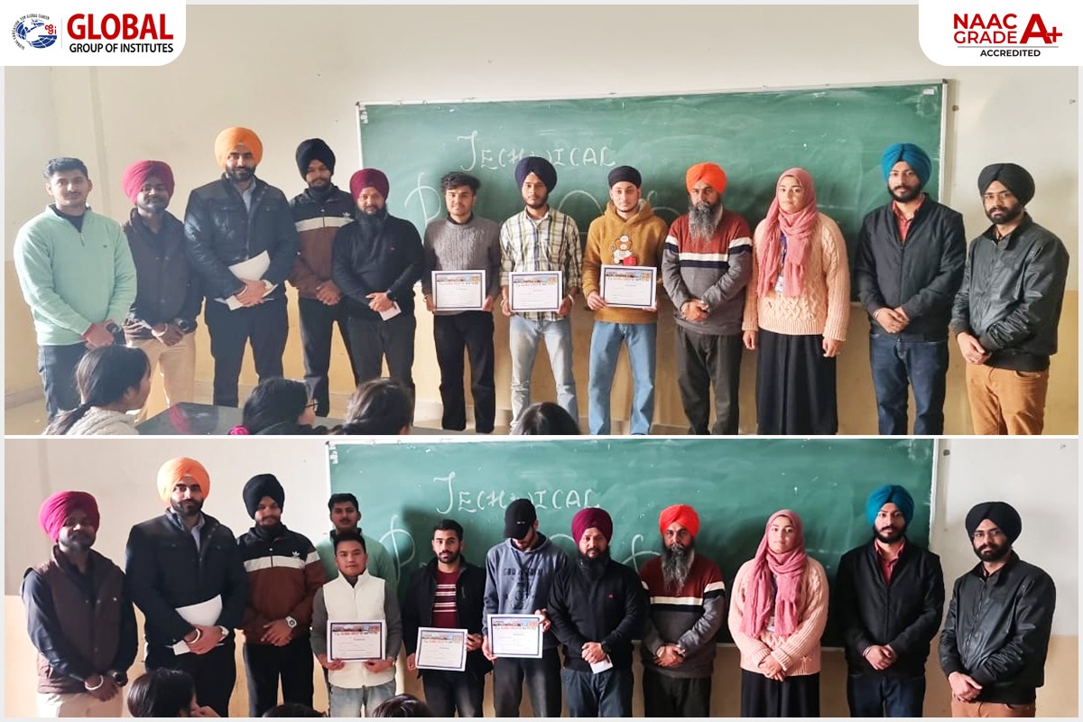 Road safety sensitization is vital to ensure the safety of everyone. Making the general public aware of the importance of road safety can help reduce the rate of accidents and road mishaps that happen daily. Seminars and educating people can be helpful to guide them and make them aware of the consequences. To bring the same awareness to our students and the people around us, The Department of Civil Engineering and Mechanical Engineering organized A Road Safety Awareness Camp in collaboration with The NSS wing of the Global Group of Institutes on 5th February 2024 where students of our department took the initiative to interact with road users and made them aware of various Rules and Regulations regarding Road Safety including Mandatory Signs, Cautionary Signs, Informative Signs, Traffic Control Signals, Pedestrian Signals, Indian Highways Milestone Colour Codes, Road Markings as per Indian Road Congress etc. All the students participated in this initiative with full zeal and encouraged road users. The camp proved beneficial for students as they gained more knowledge in the field of Highway and Traffic Engineering through Practical Exposure.