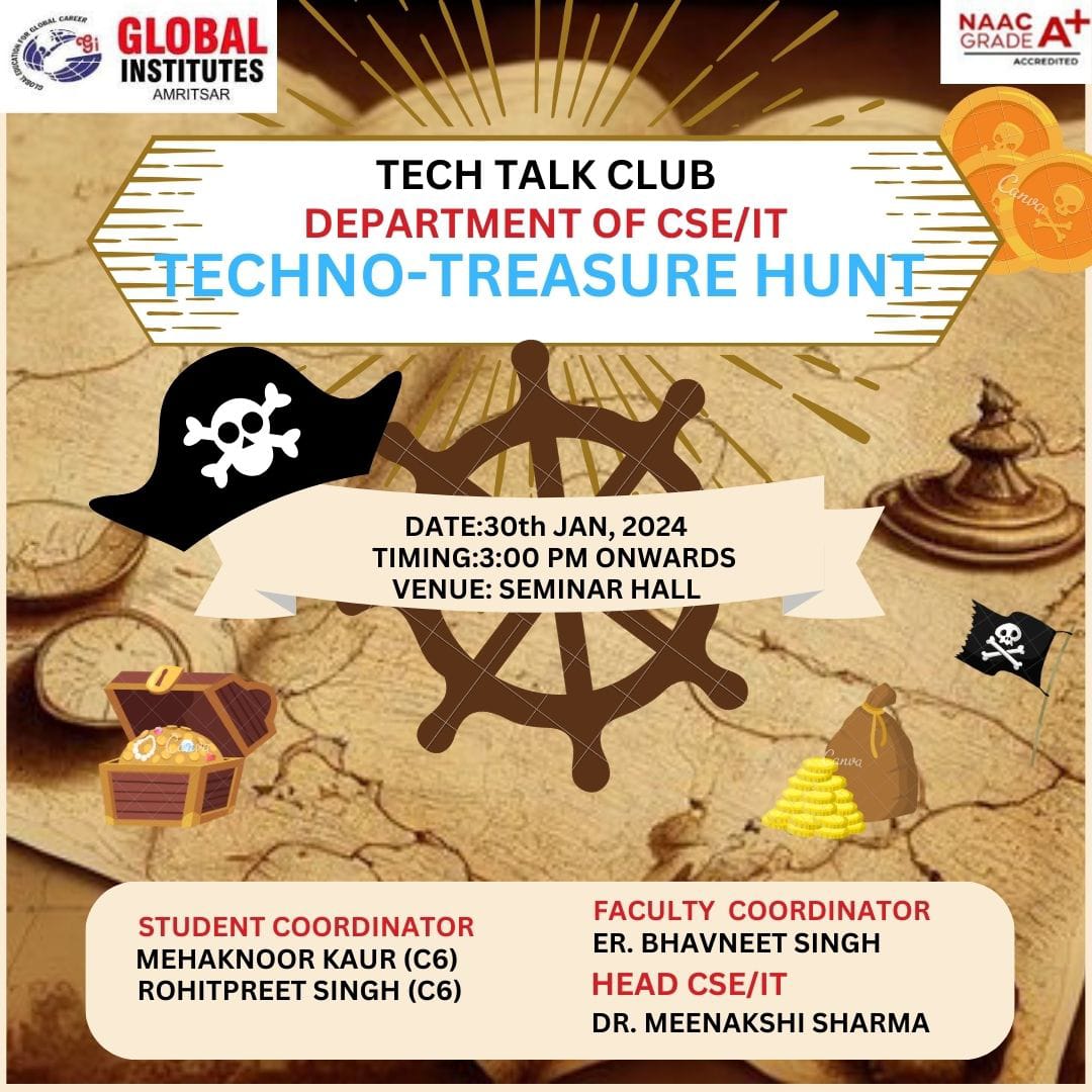 The Technovation Club of Department of Computer Science & Engineering / Information Technology Organized ‘Treasure Hunt’ event on 28.10.2016. The Objective was to build team spirit among students and to motivate them to use mind, body and strategy to solve puzzles successfully.