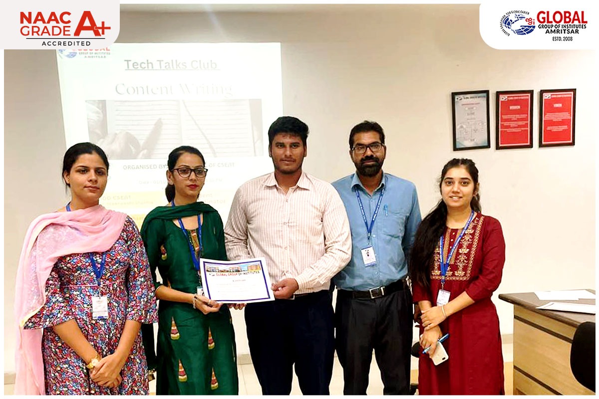 | Anjali Rattan (Adroti P Ltd) (B.tech CSE “Global Institutes regularly organizes industrial visits and guest lectures by industry experts, providing valuable exposure to real-world practices. The classrooms are well-equipped with modern facilities such as air conditioning and LCD projectors, creating a comfortable and effective learning environment. The teaching approach is aligned with current industry trends and focuses on practical relevance, ensuring meaningful learning. The faculty members consistently inspire and motivate students to realize their full potential.I am proud to be a product of this esteemed institute.” |