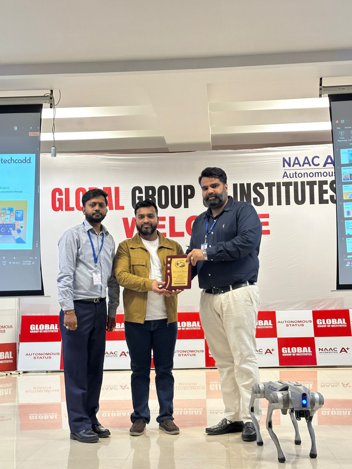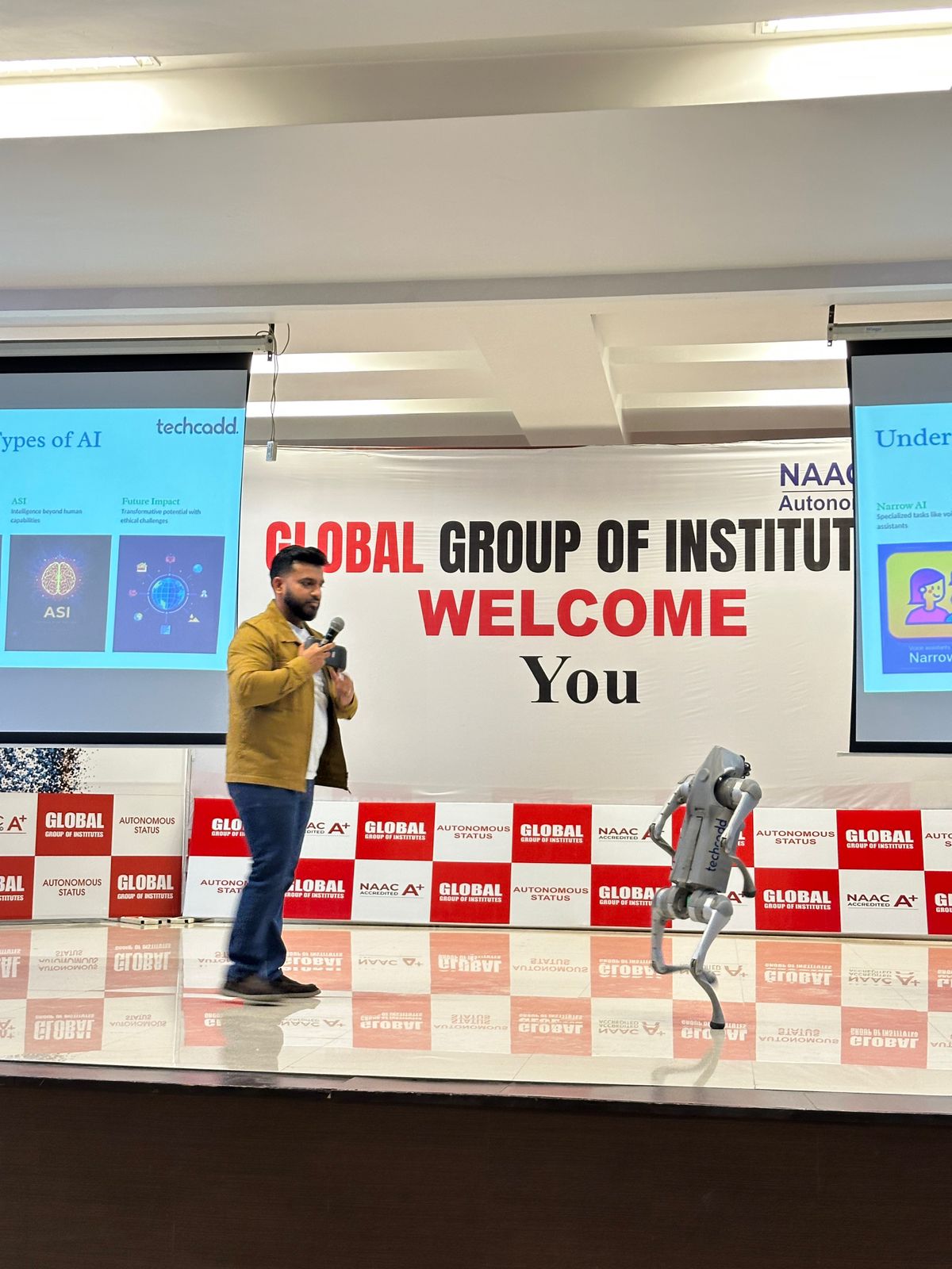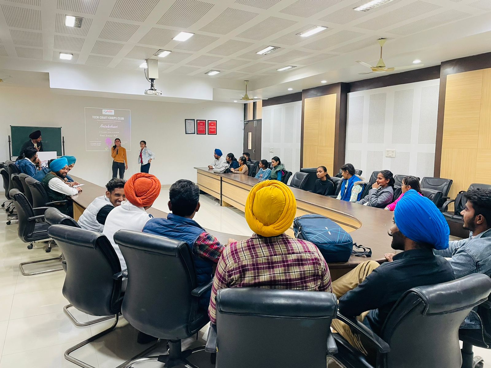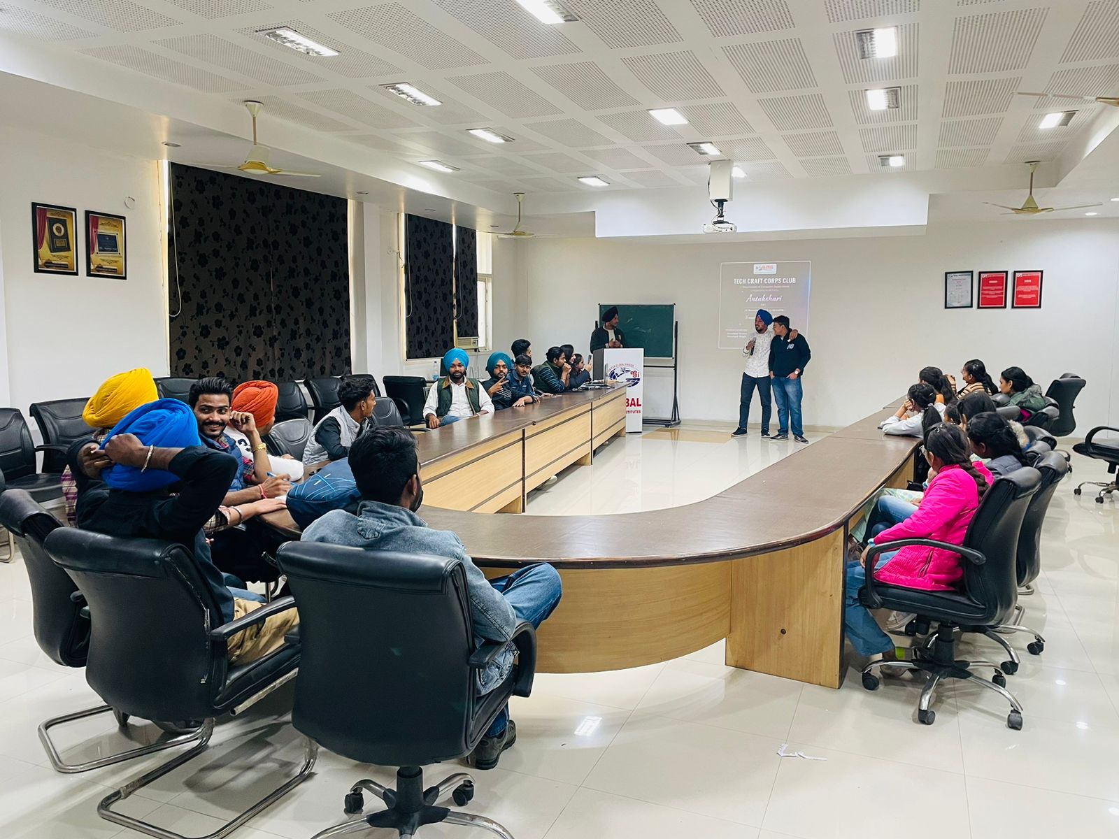 Tech Craft Corps Club of the Department of Computer Applications organized a seminar on the topic of “AI & Robotics with Live Demonstration” on 17th March 2026 in the presence of enthusiastic students of MCA, BCA, B.Sc(Cyber Security) and B.Tech(CSE,IT & AIML) and faculty members. The session was delivered by Mr. Gourav Gupta, an educator and tech innovator committed to transforming how students learn by integrating AI and robotics into mainstream education. As the Founder of Techcadd, he has introduced future-ready curricula, AI-driven learning tools, and robotics-based demonstrations that make complex concepts interactive and accessible. His vision is to prepare every student for an AI-powered future by blending practical technology, hands-on experimentation, and real-world innovation inside the classroom.