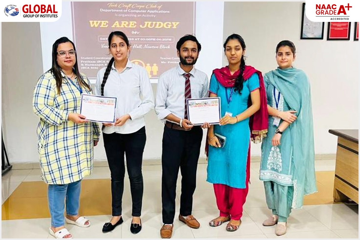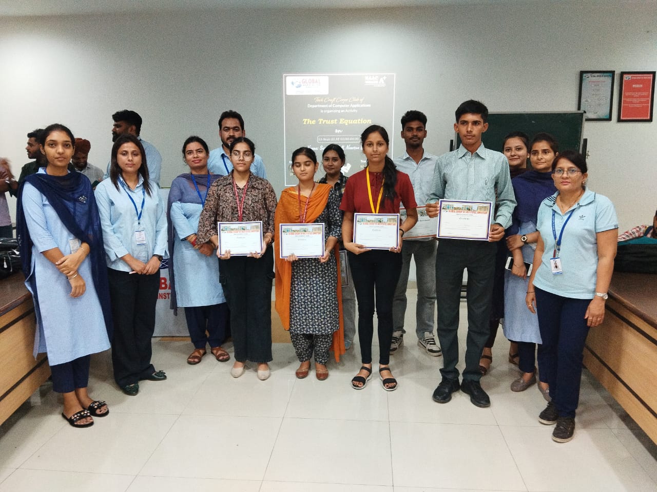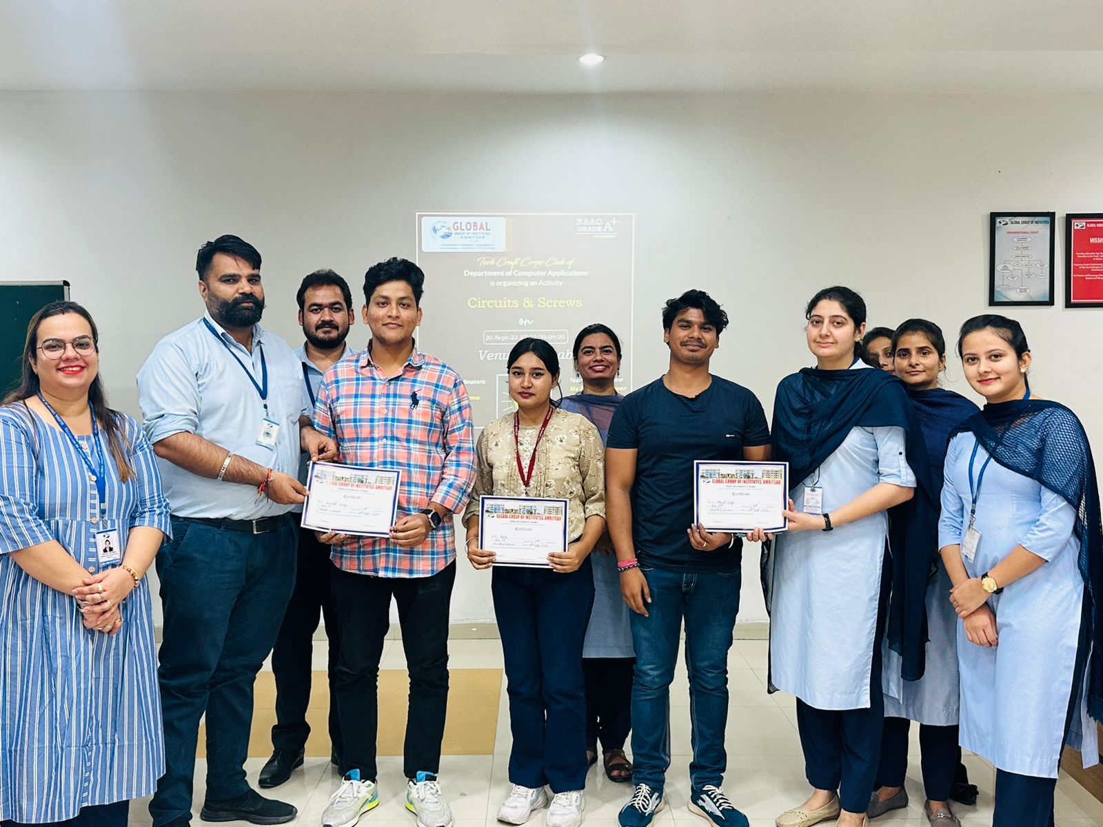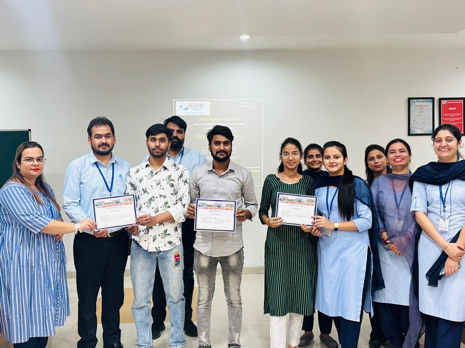 Tech Craft Corps Club of Department of Computer Applications organized “Technical Aptitude Test” on 23rd Jan 2019.The Objective of the test was to assess the technical skills and knowledge of participants. More than 50 Students of different streams participated in this Competition. Ms. Manisha of MCA stood first position, Mr. Abhi Chohan of MCA stood 2nd position and Mr. Sagar Sethi of B.Tech CSE stood third Position. The winners were awarded with certificates by Dr. M. S. Saini, Director (GIMET) and Dr. Leena Jain Head (CA).