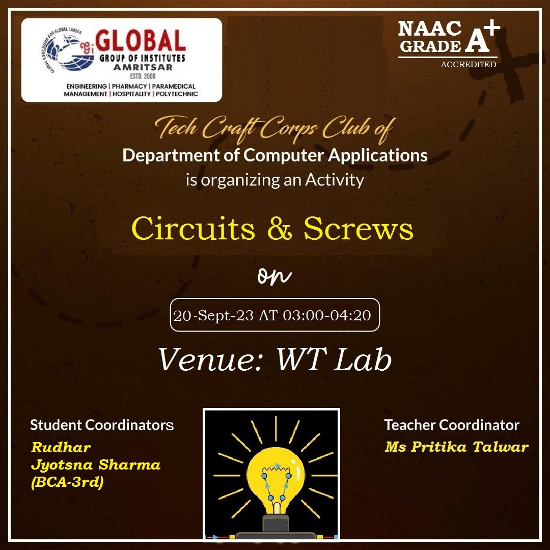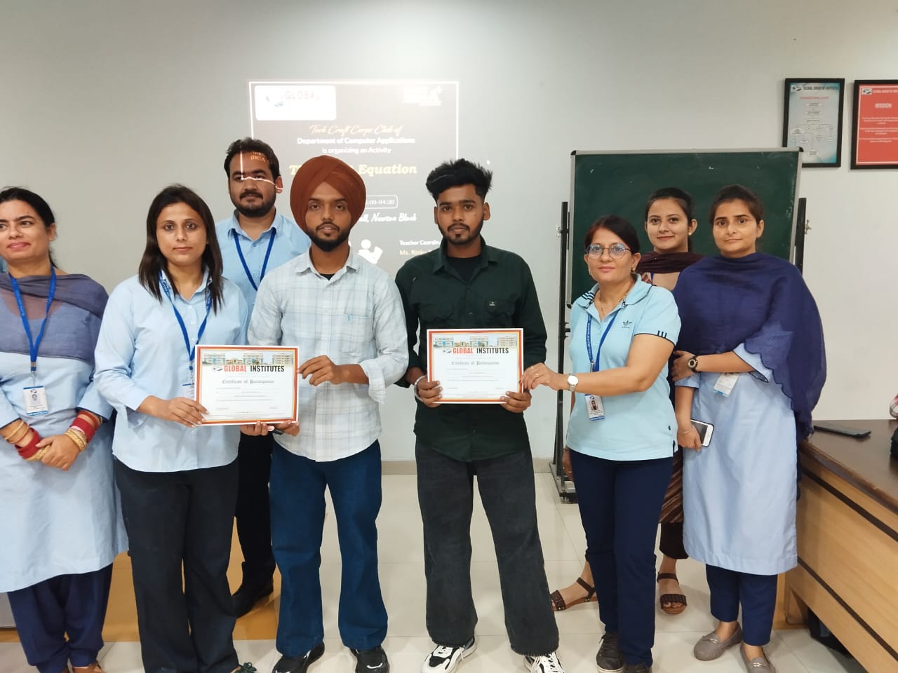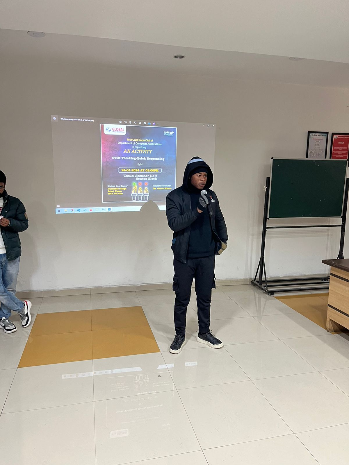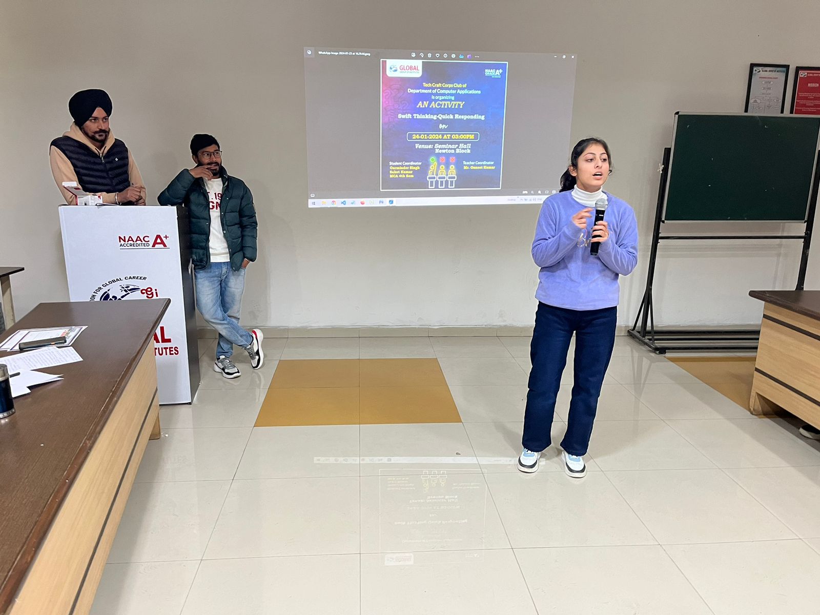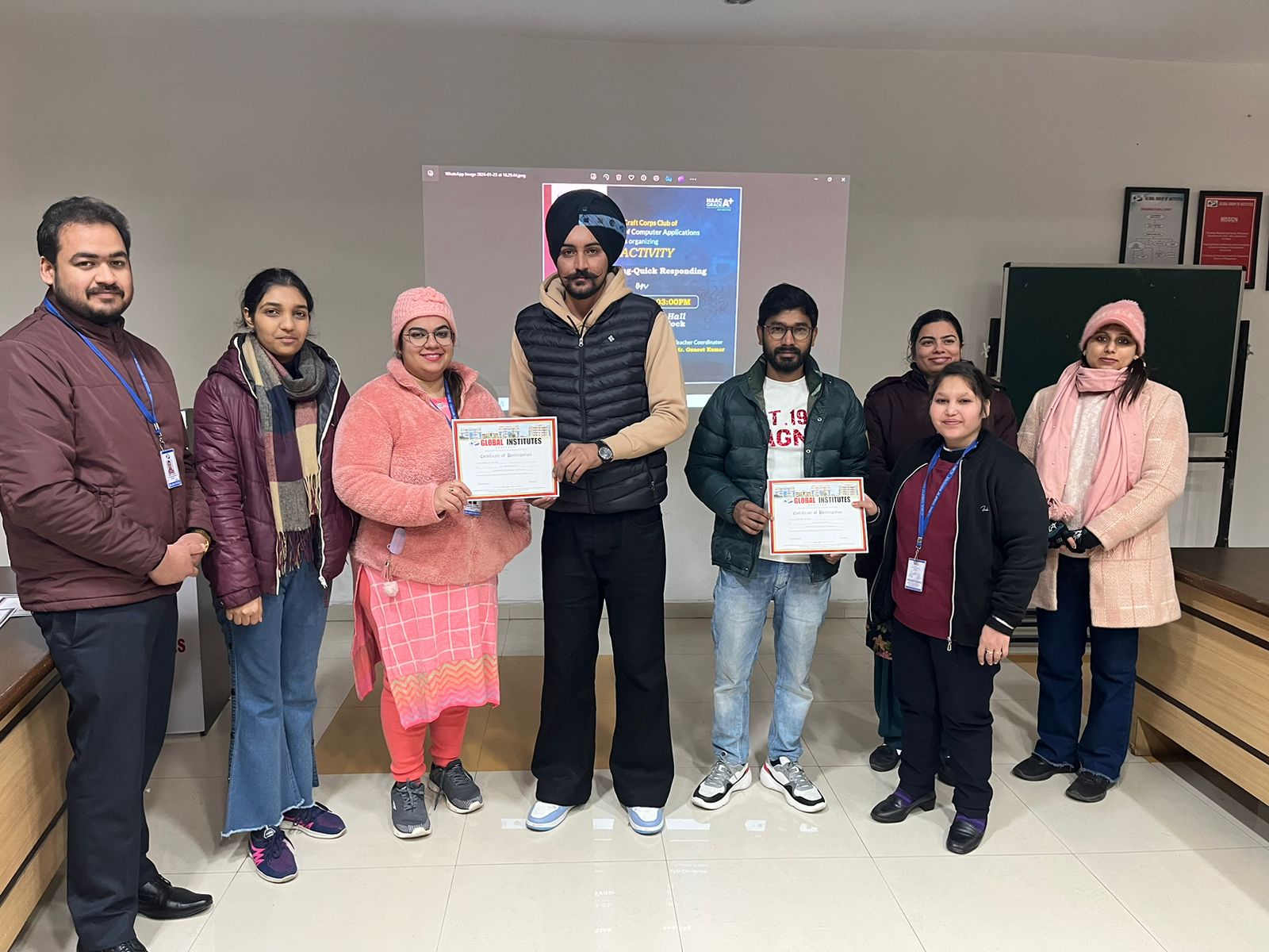In order to clarify upon the basic concepts as being required by various IT giants, Tech-Craft-Corps Club of Department of Computer Applications of Global Institutes Amritsar has organized a Workshop on “LAN Devices” for its MCA & BCA students. The expert for the session was Mr. Nishant Kumar, Network Administrator at one of the technological lab at Jalandhar.