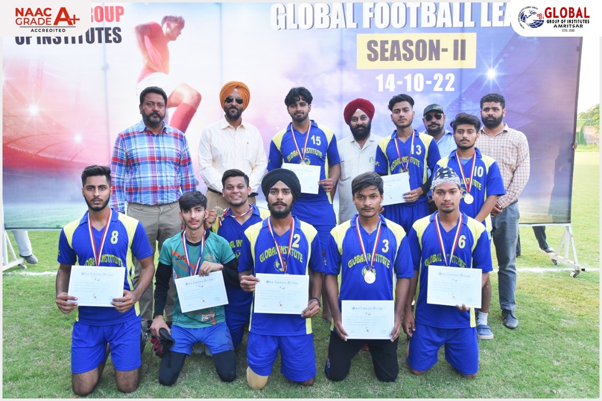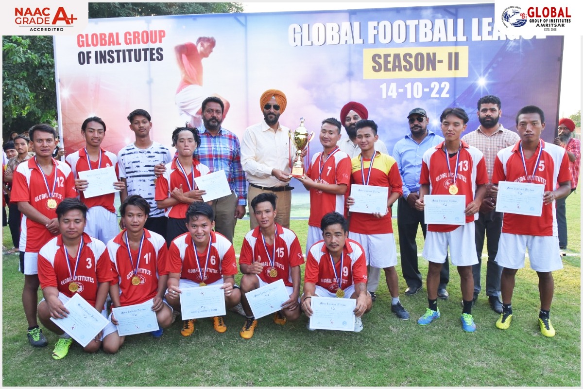 The team of B.Tech. Civil captured the Global Football League Season-II 2022 by defeating the Department of Management by 4 goals to 3 in the tie breaker played after both the teams failed to score any goal in the prescribed time.