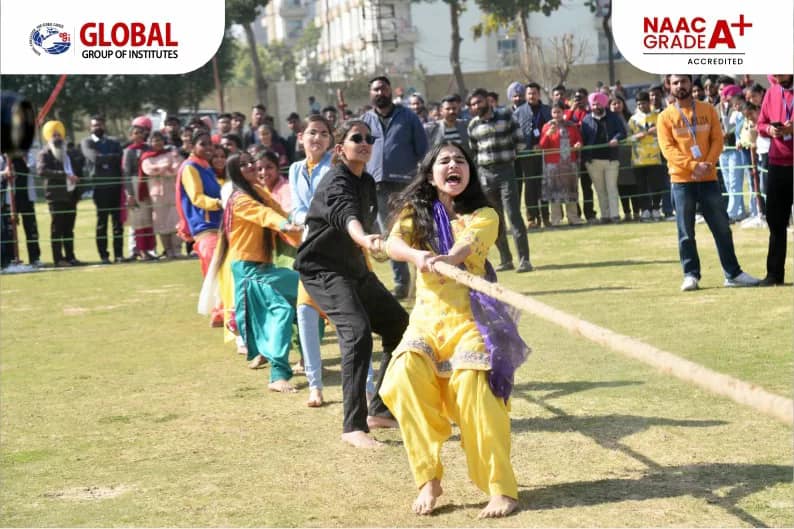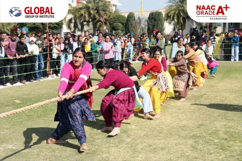 The teams of boys and girl students from different departments took part in ‘ *Tug of War’, ‘Matka Phod’ and ‘Kite Flying’* competitions with zeal to clinch the trophies and win cash prizes at stake.