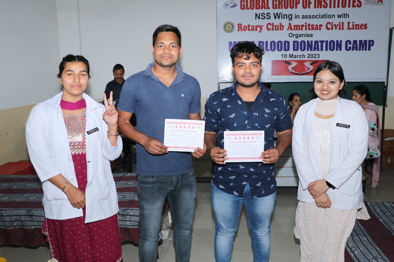 NSS wing of Global Group of Institutes in association with Rotary Club Amritsar Civil Lines organised a Mega Blood Donation Camp in the campus on 10th March 2023.