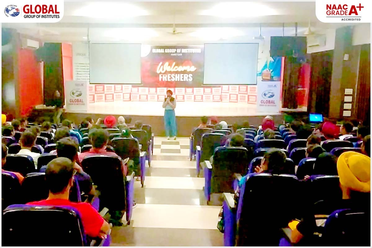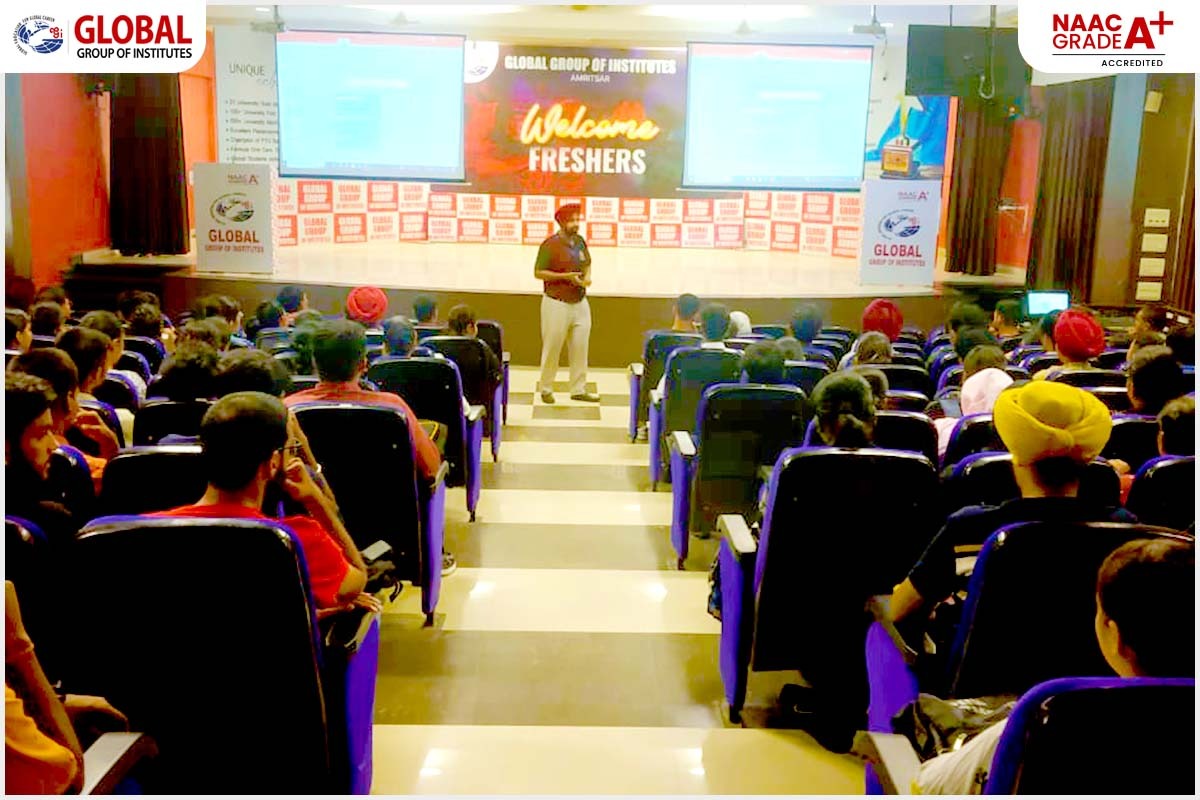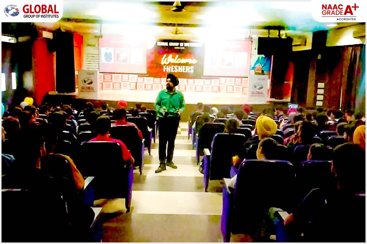 Dr. Meenakshi Sharma addressing the students said that Digital Platforms play an important role in our day to day life. Educational digital platforms play an important part in learning today as many Educational platforms offer different kinds of studies online and free. Anybody can benefit out of it. She specifically mentioned SWAYAM NPTEL of which Global Group of Institutes is the local partner.