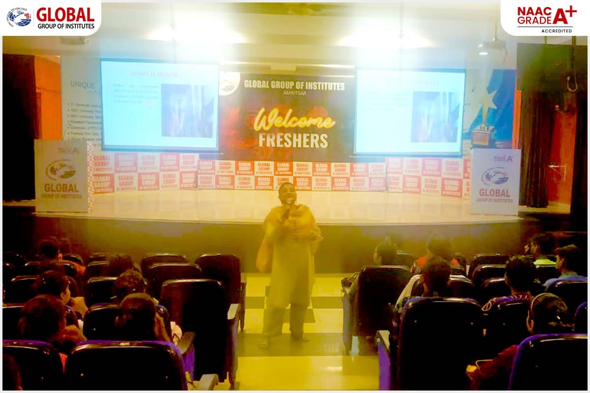 Dr. Shelly acquainted the freshers with the importance of Business Environment . She told about the surroundings of the business establishment and internal and external environment of any business.